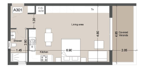 Covered veranda:9m²