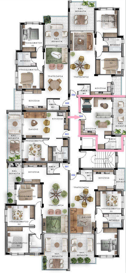 A modern studio flat located on the 5th floor in Kato Polemidia, offering a comfortable and practical layout with a stylish bathroom. The space is designed for convenience, with a bright interior enhanced by natural light and contemporary finishes.