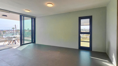 The flat is set in a secure building with elevator access to the penthouse and enjoys partial sea and mountain views, with large windows bringing in plenty of natural light.
